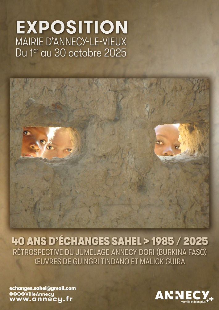Depuis 1985, Échanges Sahel anime le jumelage historique Annecy-le-Vieux / Dori (Burkina Faso). À l’occasion de ses 40 ans, l’association vous invite à découvrir ses projets emblématiques et à rencontrer ses adhérents pour échanger sur l’engagement solidaire : assainissement, musée peuhl, formation des femmes, journées africaines… Échanges Sahel a fait appel à deux artistes burkinabés pour cheminer de façon artistique à travers l’exposition :