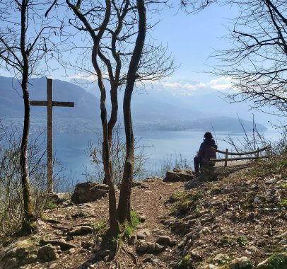 Avec un détour de 10 minutes en aller-retour, vous pourrez admirez un magnifique point de vue sur le lac d'Annecy et les montagnes depuis la croix du Cruet. Un panneau sur votre gauche vous indiquera le chemin à suivre.