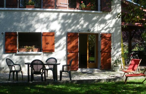 Joli F2 en rdj de notre maison, dans un grand jardin clos et arboré, calme et indépendant. Salon de jardin. Vaste parking clos pour auto, remorque et bateau, abri vélos.