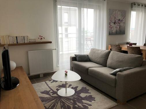 Annecy centre ville, 80m gare. T2. Terrasse. Garage fermé. Espaces verts. Copropriété. Vue dégagée. Dernier étage. 2 à 4 personnes. Cuisine américaine entièrement équipée. Chambre lit 160x200. Séjour canapé-lit 140x200. TV. Wifi.